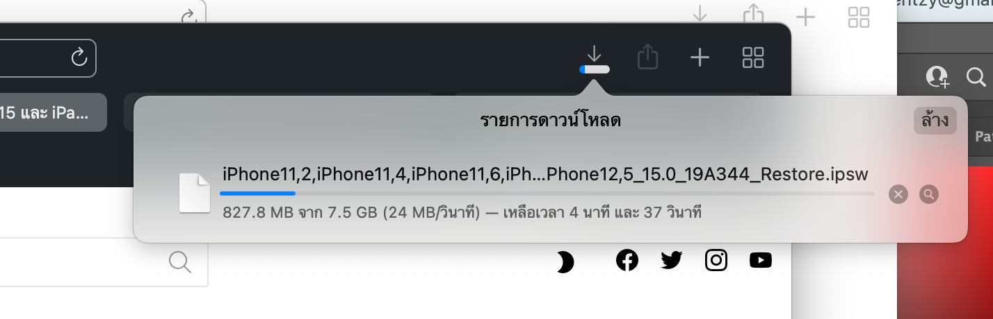 ดาวน์โหลดไฟล์ iOS 15 IPSW ของ iPhone รุ่นที่เราใช้งานอยู่ : https://www.iphonemod.net/ios-15-ipados-15-ipsw-download.html