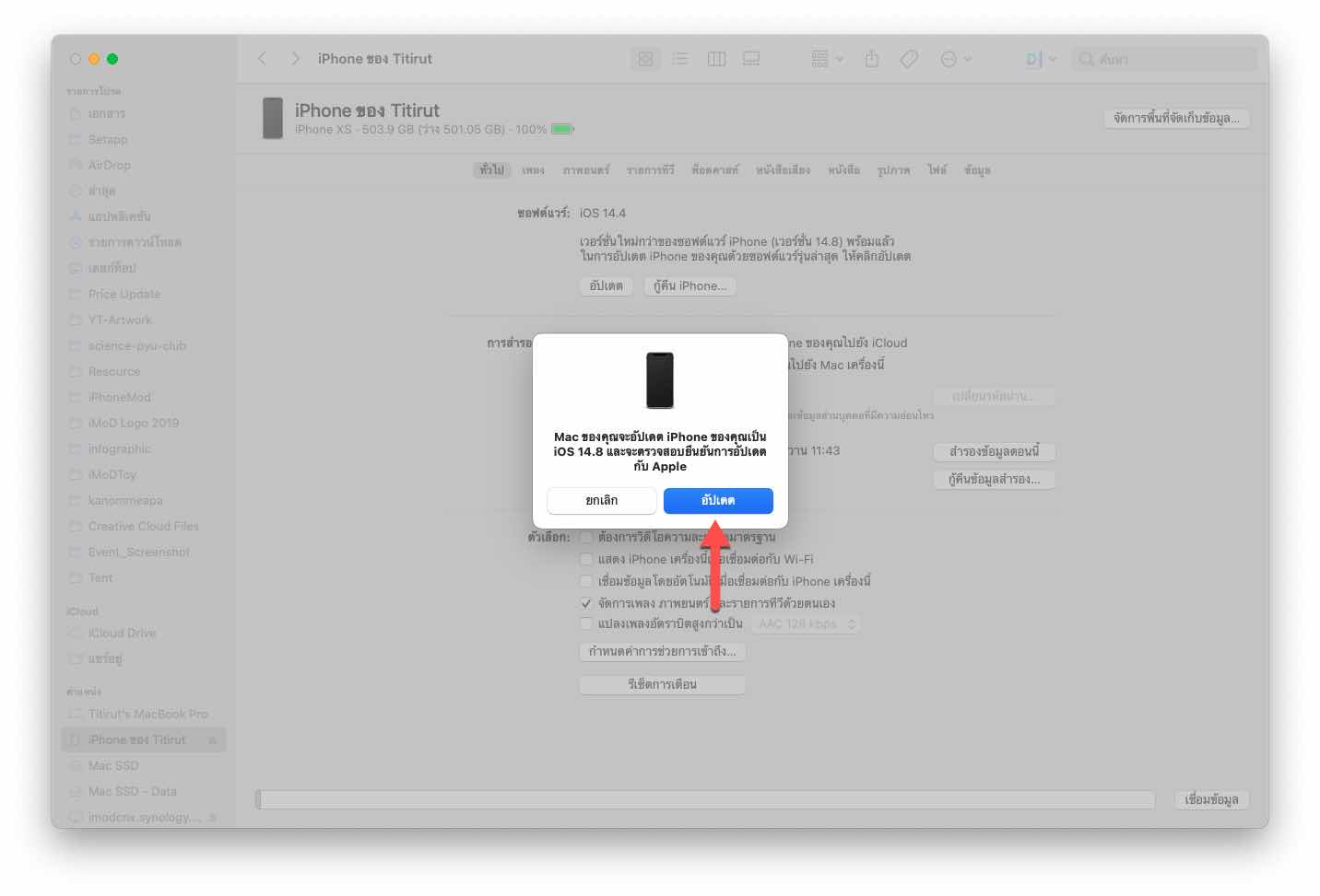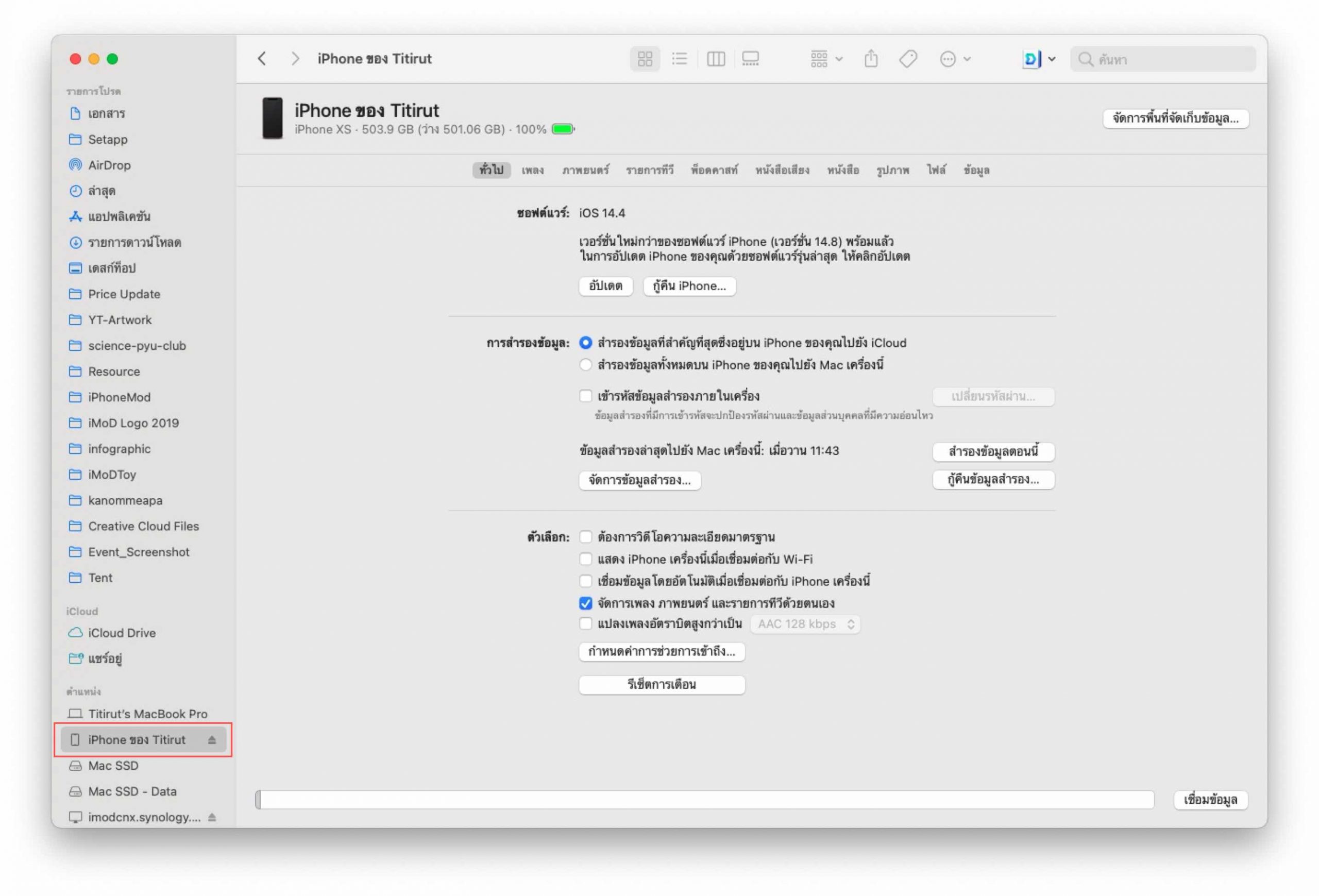 - ใน macOS เวอร์ชันใหม่ ๆ จะไม่มีแอป iTunes แล้ว ต้องทำผ่าน Finder