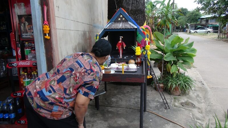 นายสัมพันธ์ พร้อมด้วยครอบครัว ญาติพี่น้องและชาวบ้านดงเย็น ได้ทำพิธีเซ่นไหว้ต้นตะเคียน หลังจากได้รับโชครวยรับปีใหม่ที่ผ่านมา กำลังปรุงลาบหมูหม้อใหญ่ รวมทั้งขนมจีนน้ำยากะทิ น้ำยาป่า เพื่อเลี้ยงชาวบ้าน หลังจากที่ตนเองได้โชคจากต้นตะเคียน