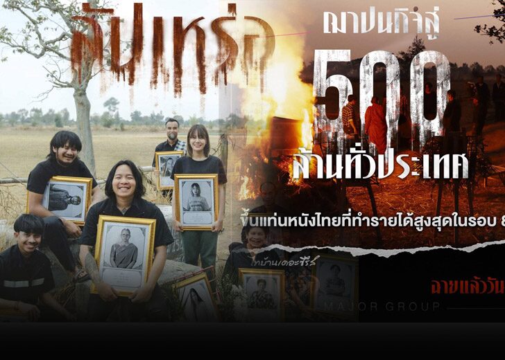 ขณะที่ Major Group โพสต์ภาพพร้อมข้อมูลผ่านเพจ ระบุว่าเรื่อง “สัปเหร่อ” ทำเงิน 500 ล้านพร้อมขึ้นแท่นทำรายได้สูงสุดในรอบ 8 ปี